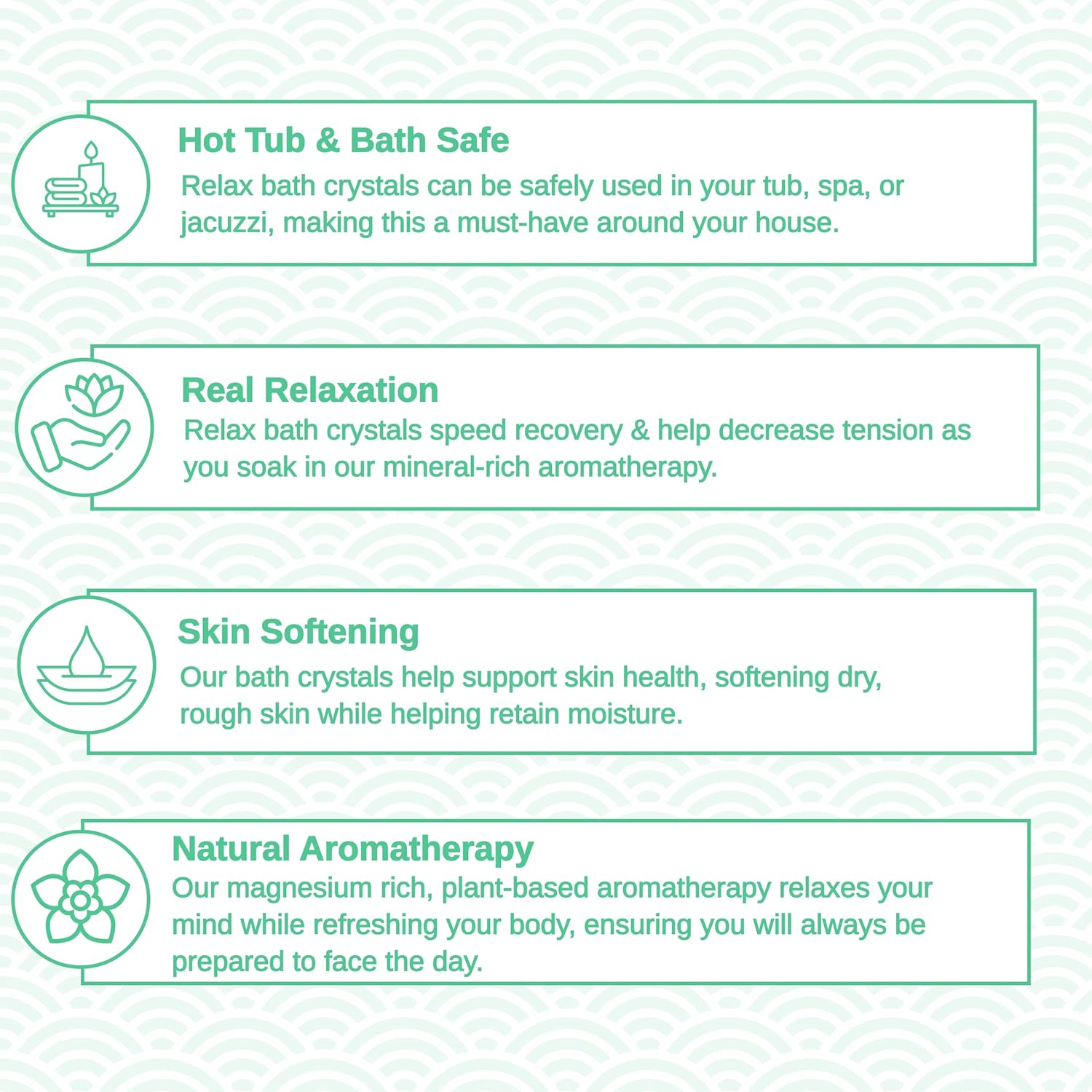 - MENTHA SCENT WITH PURPOSE: Crisp and refreshing, this aromatic blend centers around mentha—clean and cool, never overpowering. Designed to elevate hot tub sessions using high-end aromatherapy bath salts that feel like a breath of fresh air.